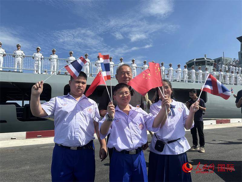 当地时间早上7时,戚继光舰和沂蒙山舰抵达指定海域,与泰国“象岛”号登陆舰会合,中泰双方官兵用旗语互致问候。随后,三舰组成编队行进,驶向梭桃邑港。10时许,悬挂中泰两国国旗的戚继光舰、沂蒙山舰缓缓靠港,编队官兵分区列队,向欢迎人群挥手致意。港岸码头,中国驻泰国大使张建卫和使馆人员以及中资机构、华侨华人代表、中泰青年代表、泰国皇家海军等1700余人在码头迎接,并举行了隆重的欢迎仪式。当地中小学学生手持中泰两国国旗和中泰友好标语,热烈欢迎中国海军舰艇编队来访。